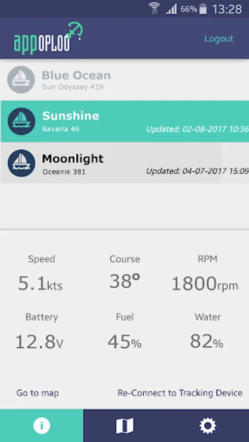 Appoploo Tracker is a tracking application for leisure boats and yachts. It provides real-time information about position, speed and key instrument readings as tachometer, battery level, tank level etc. You can monitor a single vessel or a whole fleet through a single app.