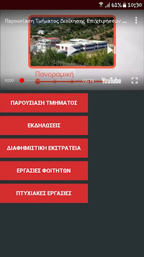 The application was made in the context of dissertation to promote the department to prospective students during the application development also added several services that will serve and registered members of the department.