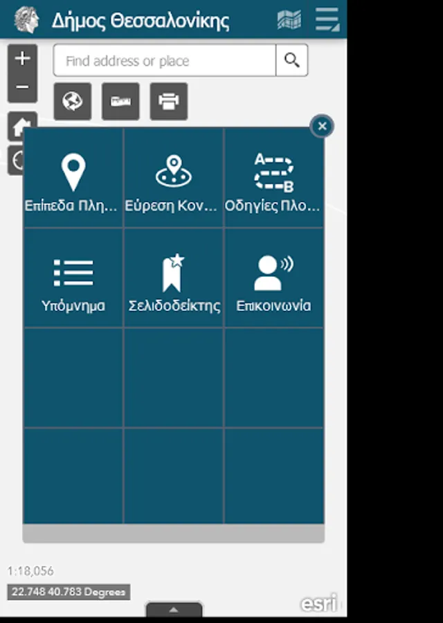 The points are displayed with appropriate symbology on the map, as well as in a list sorted, according to the shortest distance in relation to the GPS point or the center of the map chosen by the user.