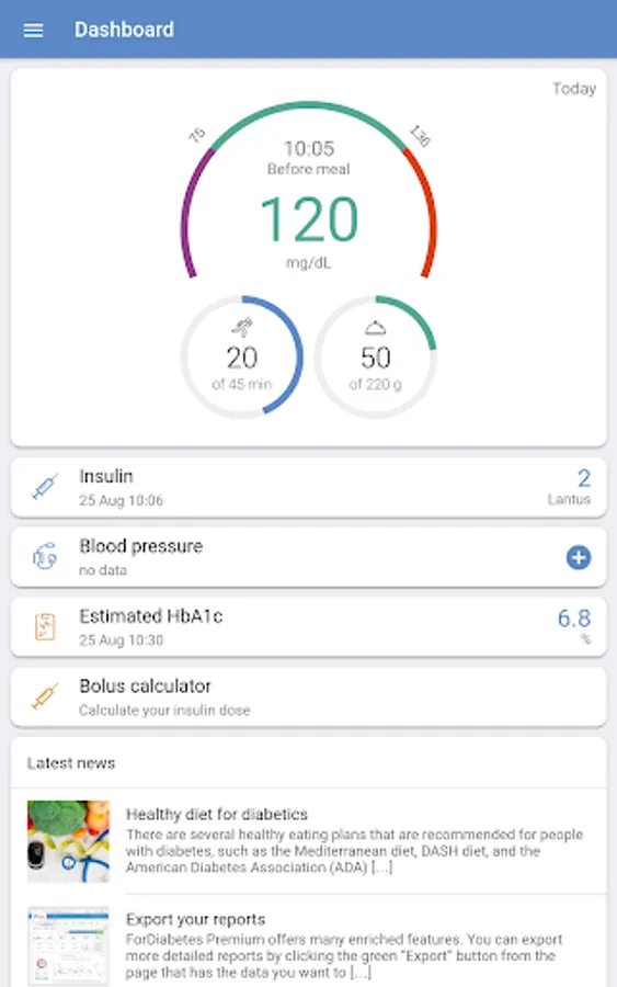 forDiabetes app is a handy tool for the management of diabetes (Type 1, Type 2, LADA, gestational diabetes or pre-diabetes). It keeps record of all key diabetes data (blood glucose level, activity, carbs, blood pressure, HbA1c, weight, medication etc), it analyzes data and exports detailed reports that enables your everyday life.