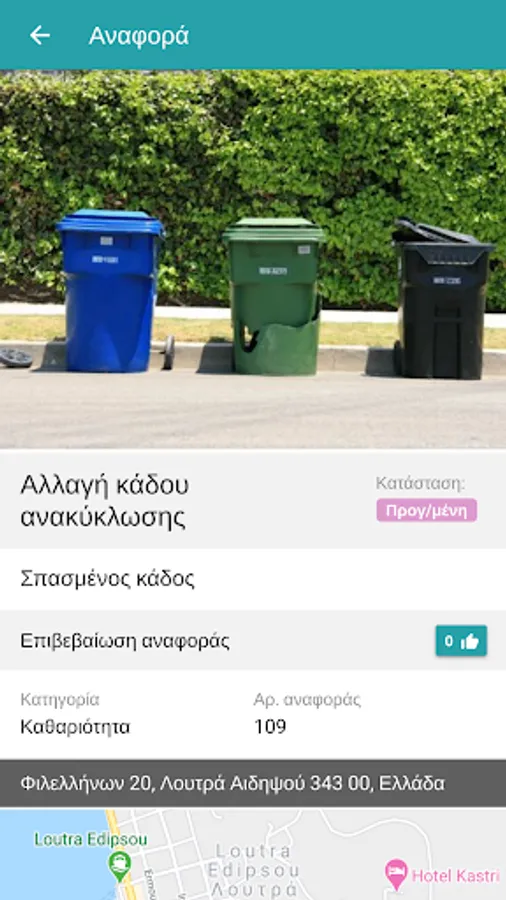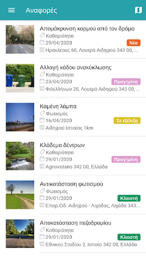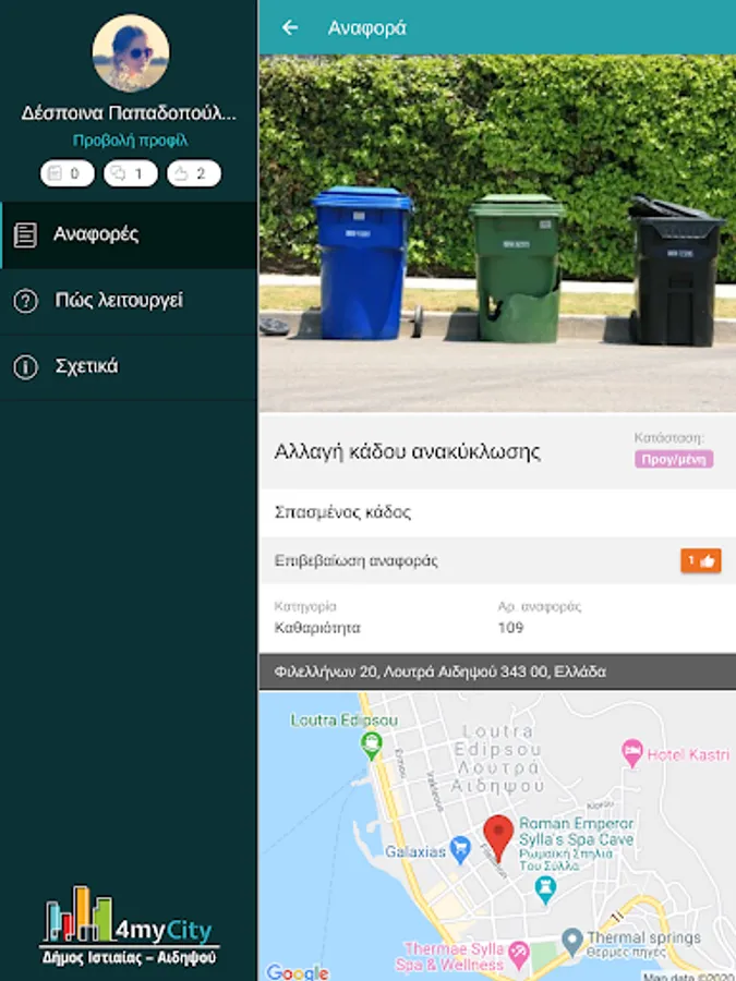 Find out about the progress of your report, until its final settlement by the competent service of the Municipality of Istiaia-Edipsos.