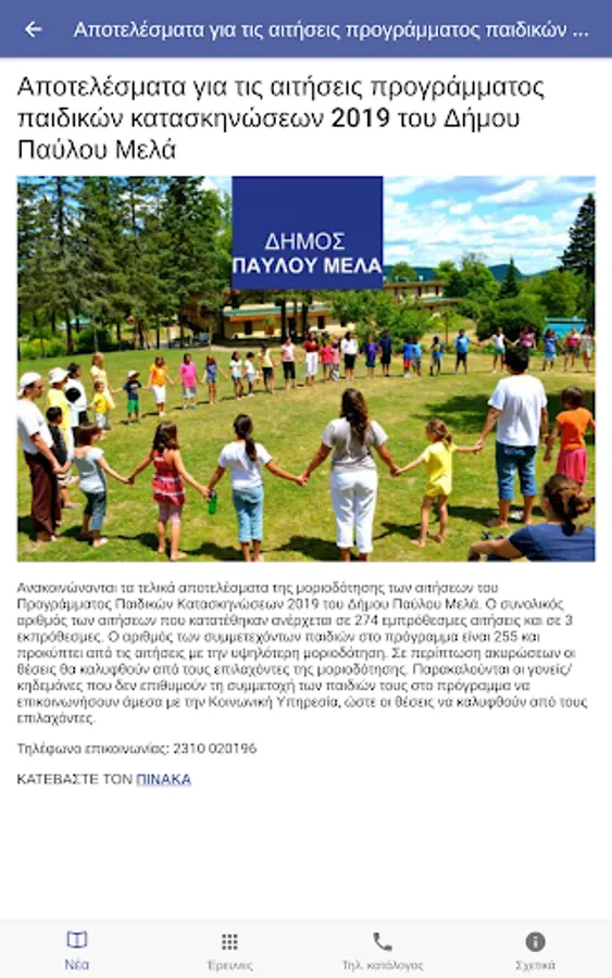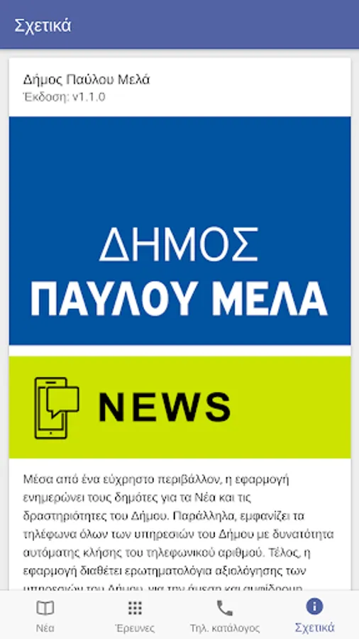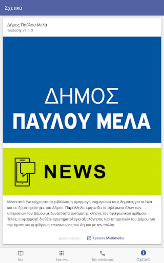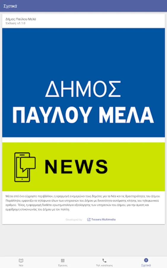 Through an easy-to-use environment, the implementation of the Municipality of Pavlos Melas informs the citizens about the Municipality's News and Activities.