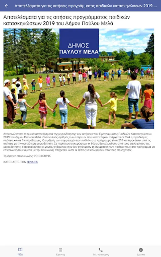 At the same time, it displays the telephones of all the services of the Municipality with the possibility of automatically dialing the telephone number.