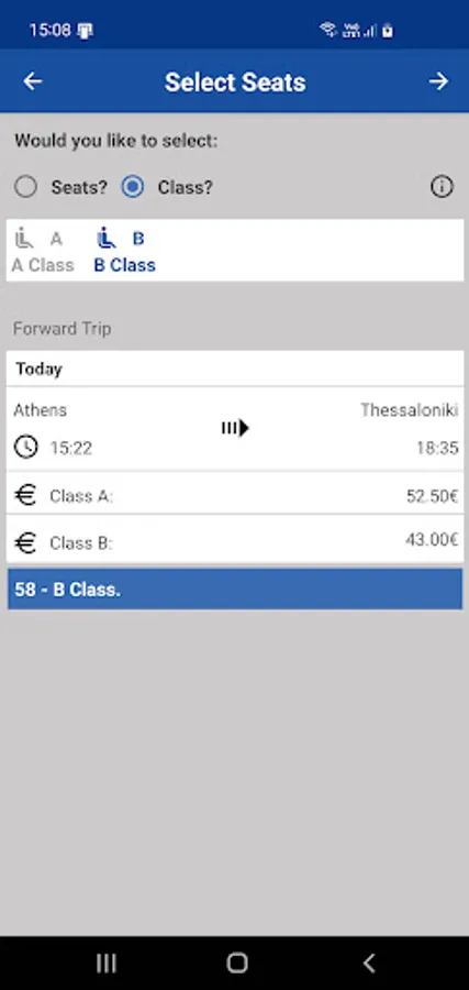 • Addition/ Removal of passengers in the case you have either selected a class or a seats’ layout is not available.