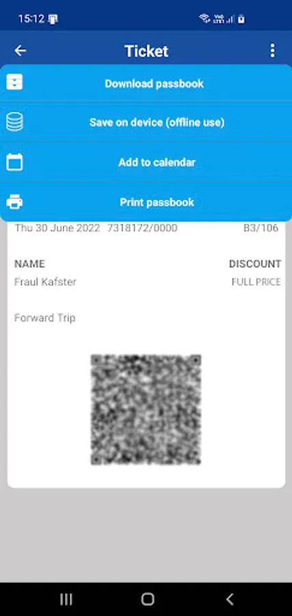 • Save your bought tickets from your account to use it using a passbook compatible app.