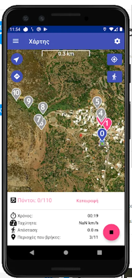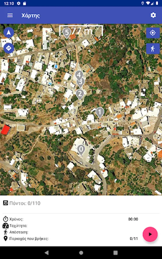 Starting from Point 0 you will have to discover, one after the other, the 10 points of interest on the map, following the instructions and answering the relevant questions. Your device's GPS will notify you when you approach each point of interest, which changes color to pink. Clicking on the point brings up the questions. You have 3 chances to answer correctly, but the app only considers your first answer. After completing the game you can see your score and other statistics.
