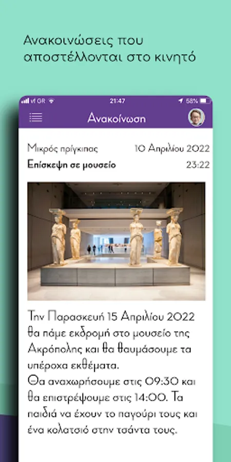 Send announcements to parent or student groups within seconds. The announcements will be sent via email but will also be sent with push notifications to all mobile phones.