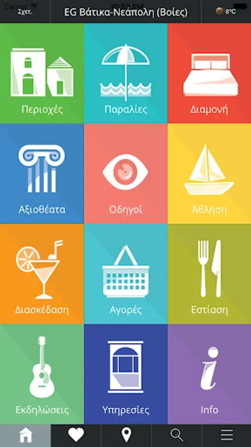 • Full coverage of all main service points (eg. Distribution, catering, entertainment) and basic information (eg. Health Centers, Municipality, Police, Tourist Information) of each region