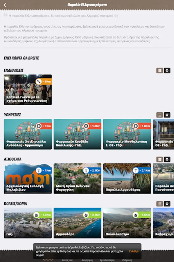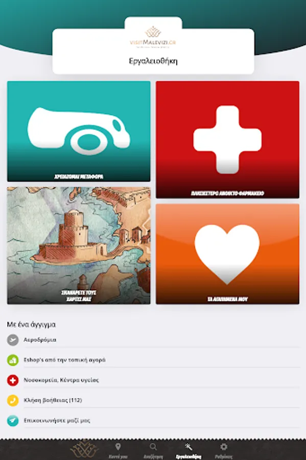 The visitMalevizi application is an innovative tool in your hands that will help you know at any moment what is happening around you in the Municipality of Malevizi. In addition, it offers you a series of useful tools that you will need during your stay in the Municipality of Malevizi, such as finding you the nearest open pharmacy, the nearest available guide to get around and not only that.