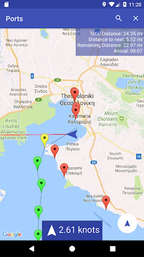 Δημιουργία μιας πορείας και πλοήγηση μέσω οχήματος σε όλα τα Λιμάνια και Μαρίνες της Ελλάδος .