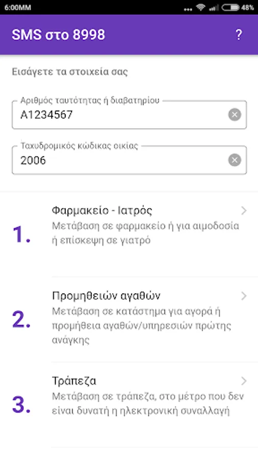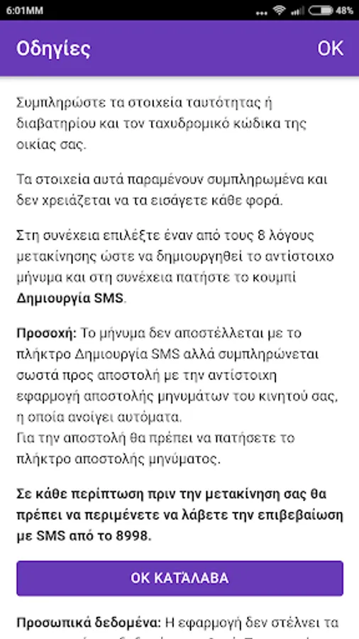 The "SMS to 8998" application does not send your information anywhere. The information you have completed and the choices you make are only stored on your device.