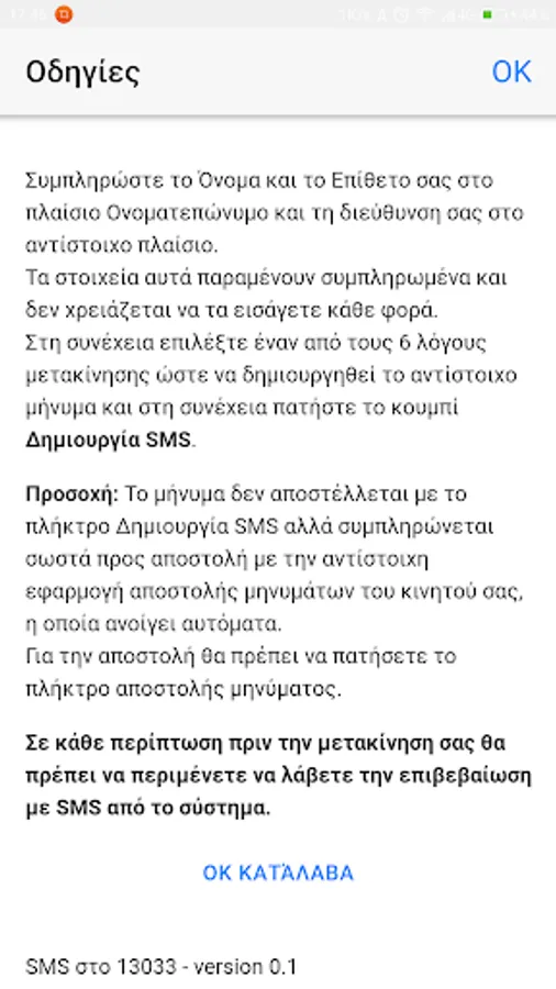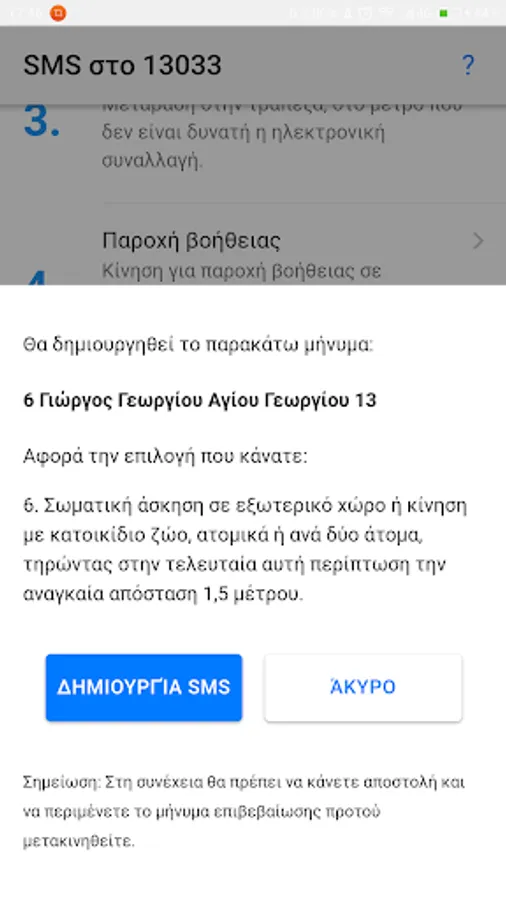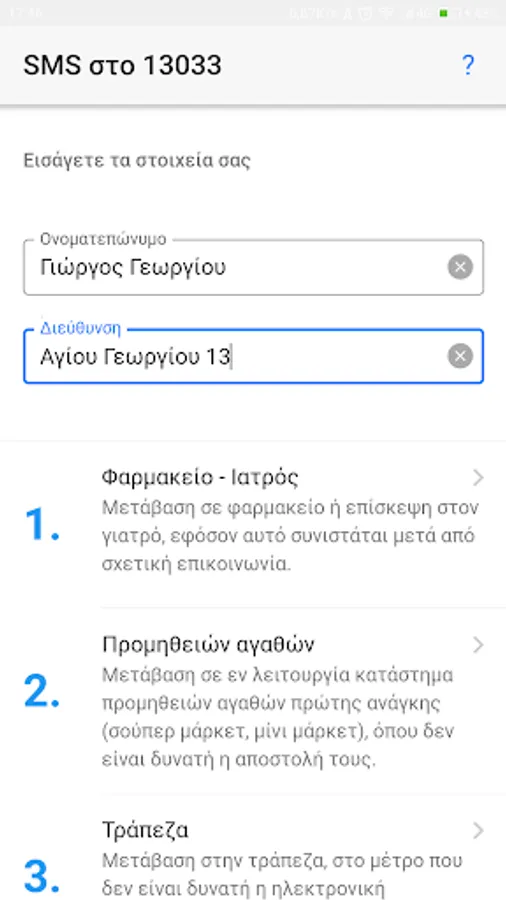 The "SMS to 13033" application does not send your information anywhere. The information you have completed and the choices you make are only stored on your device.