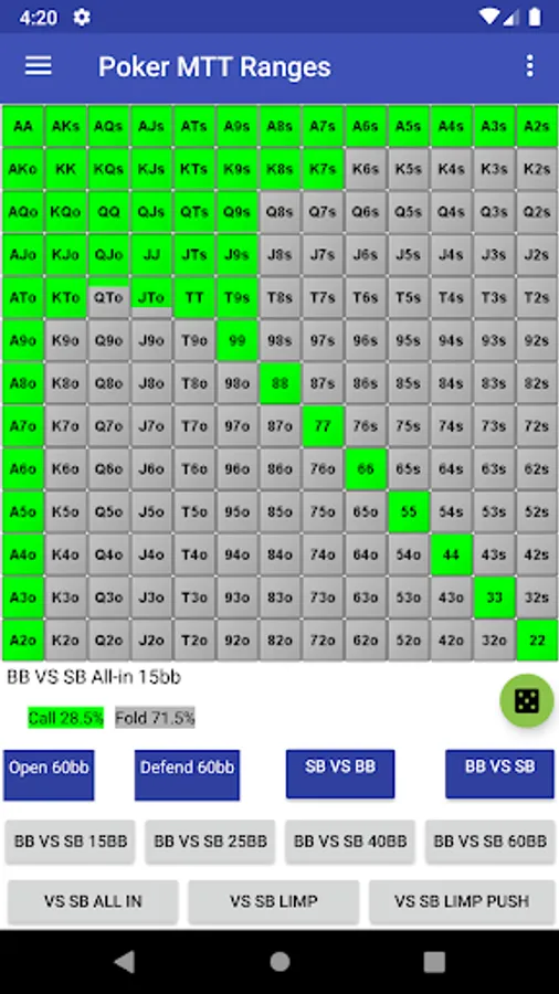 - Includes a randomizer tailored for Poker in order to play the mixed strategies with indifference.