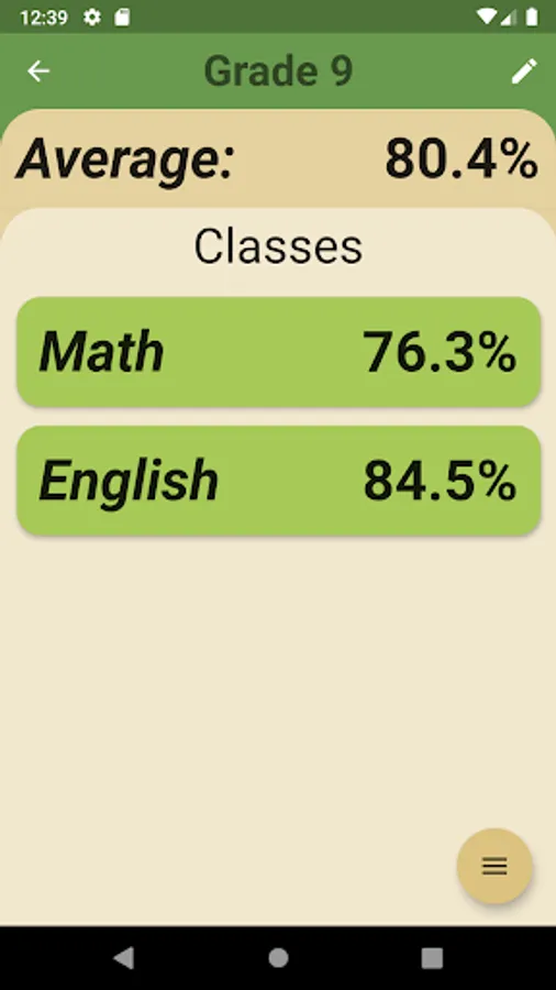 Grade Book can calculate your grades via percentage, or the category system. Once marks are tabulated, students can see their average between their classes, or the entire school year!