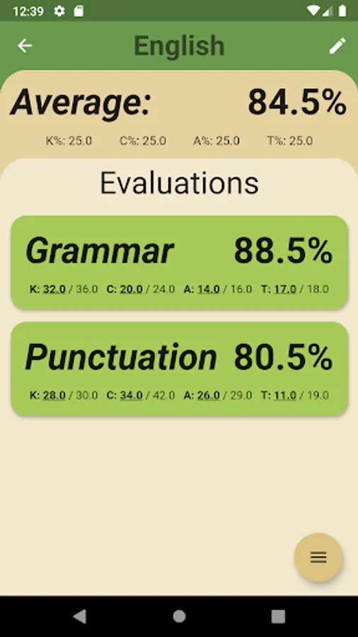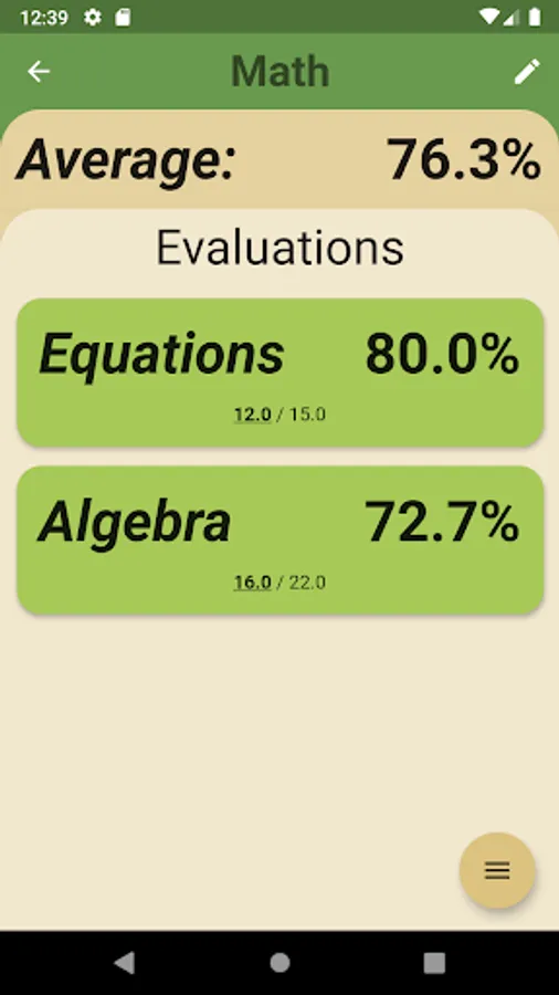 Grade Book allows users to calculate their grades for tests, projects, and any other evaluations students may come across!