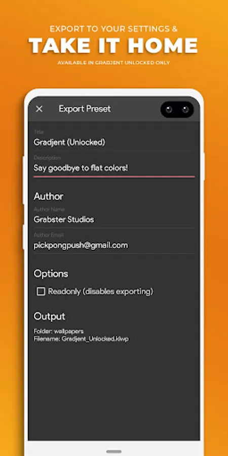 - Take your settings with you. Gradjent unlocked lets you export your klwp settings so you don't have to go through them everytime.