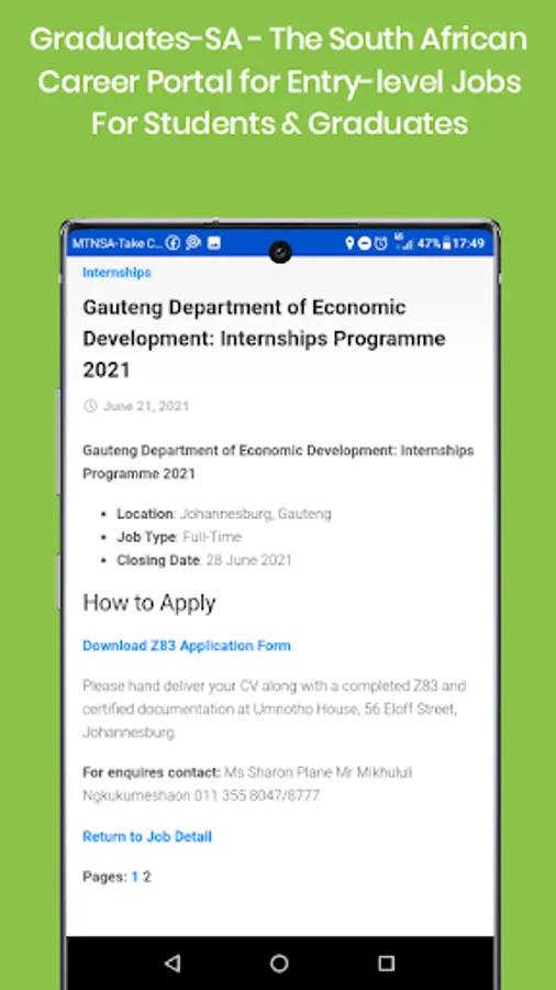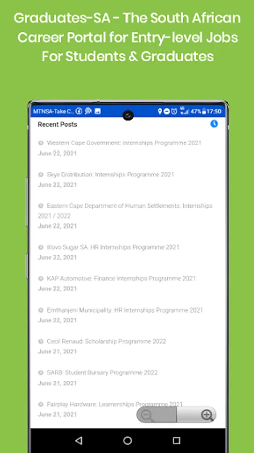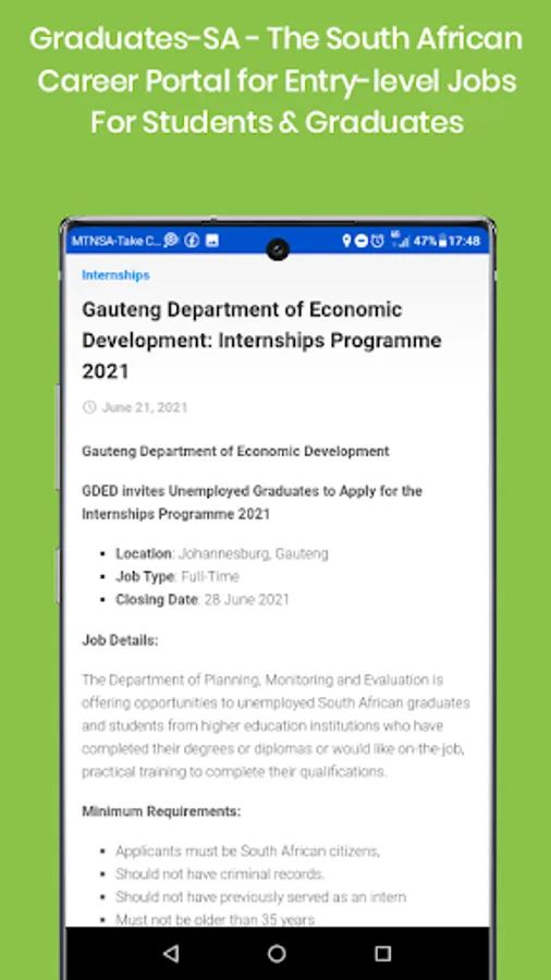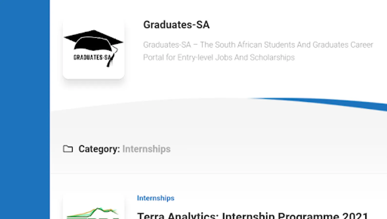 Graduates-SA, The South African Career Portal for the Entry-level Jobs, In-Service and Scholarships/Bursaries for Graduates, Students, and Matriculates. The Entry-level Jobs Include In-Service, such as Internships, Learnships, Apprenticeships Within South Africa. Jobs are Published Daily with Notifications Sent Directly to the Mobile Phone.