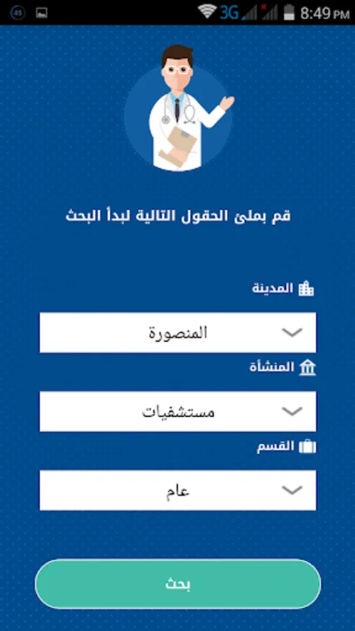 Application Guide Medical makes it easier to search for a doctor hospital or, or analysis and appropriate radiology lab, where you can find the nearest doctor to your site and find out people's views them as the application can provide information about the doctor or medical facility of communication and details of departments and disciplines information and is also specify the location ranking as the closest to the