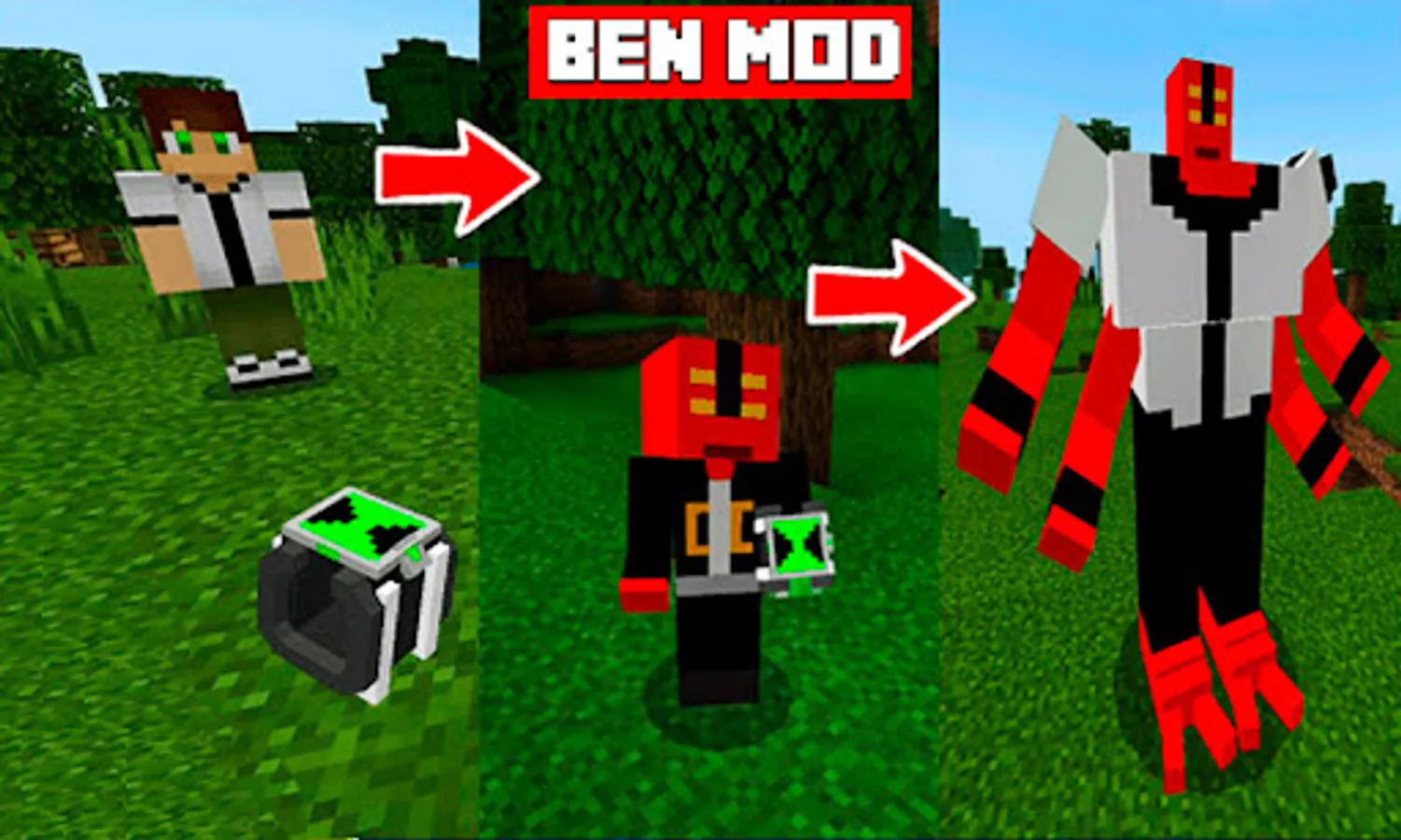 After downloading Ben Craft, you are not mistaken in the way of dealing with enemies in survival. Thanks to this mods for mcpe, Ben can fight the villains and monsters of the universe.
