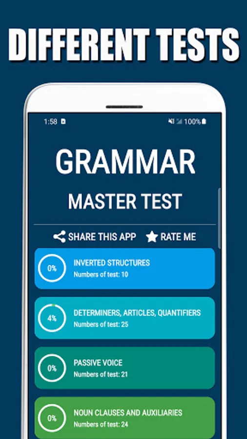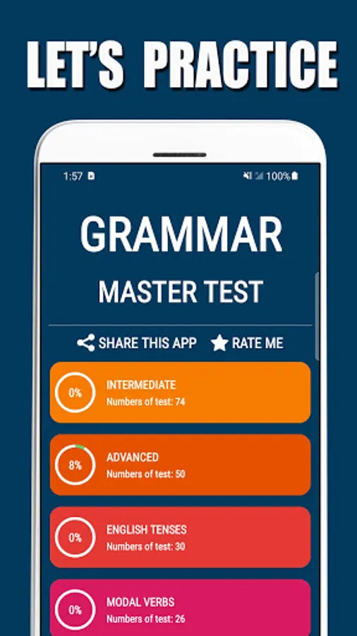 You can choose the levels from elementary to advanced or start by doing specific types of grammar test. This application help you easily to take tests daily on your phone.