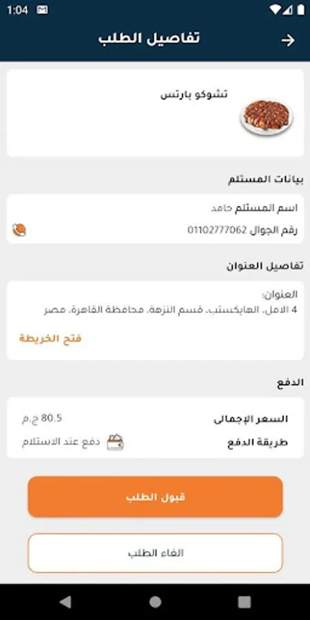 - The application provides you with many features (knowing the details and cost of the request - knowing the place and time of delivery - the possibility of accepting and rejecting the application in proportion to the delegate's vision).