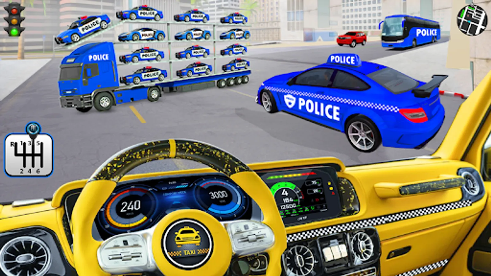 In vehicles Police Cargo Truck with Crazy Car Parking of city truck driving features: