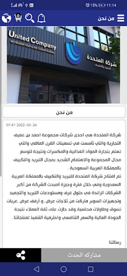 - United Company is considered one of the main companies working in the fields of air conditioning and refrigeration in the Kingdom of Saudi Arabia, due to being one of the main distributors of air conditioning and refrigeration products that are manufactured and assembled by the company's factory.