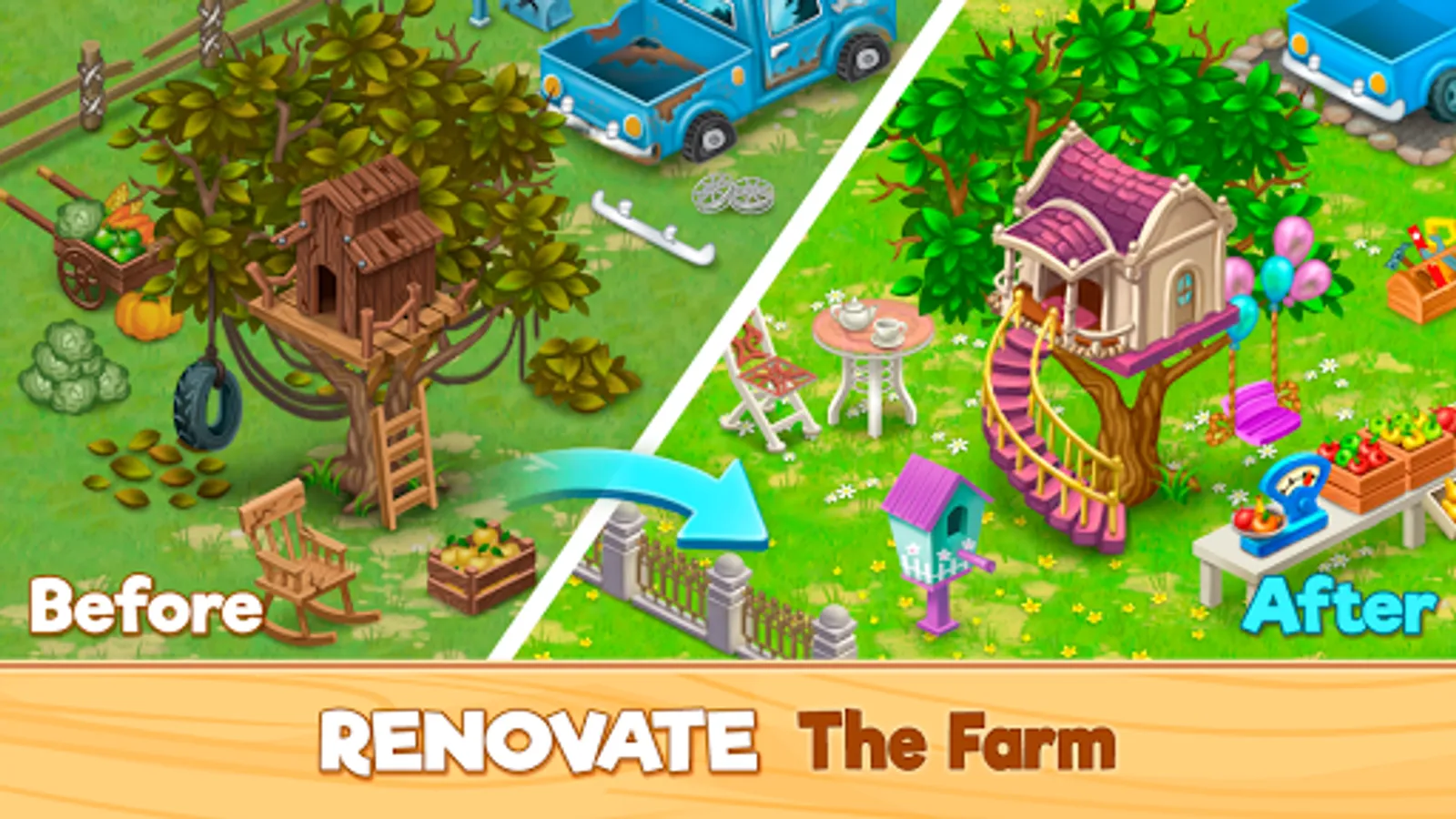 Build your dream Farm! Help Alice renovate her grandparent's home, bring comfort back to her family 's mansion. Welcome to your family dream world! Open the farm gate to start the adorable adventure!