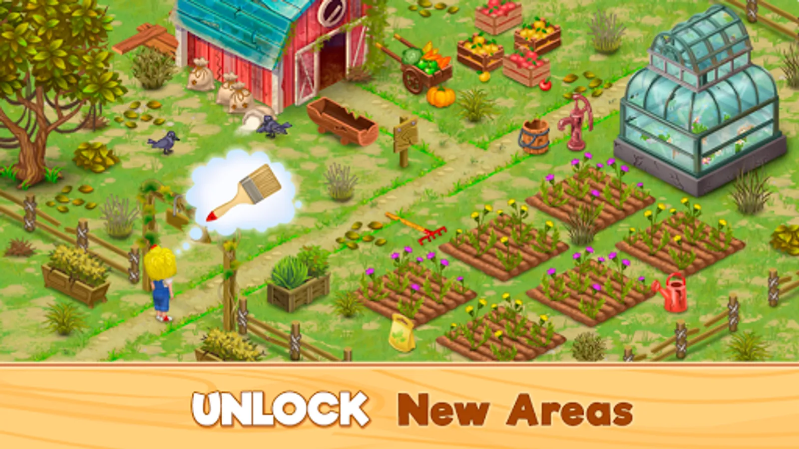 Play and win colorful match-3 levels to decorate and restore areas in the farm. Design a new home, choose exotic and wonderful exterior and interior pieces of furniture. Unlock new areas of the farm story, become friends with all the characters in the game!