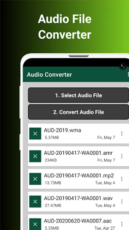 Converts .aac, .ac3, .amr, .aiff, .amr, .flac .m4a, .m4b, .m4p, .mp2, .mp3, .ogg, .opus, .wav, .wma and .wv audio files to other audio file formats.