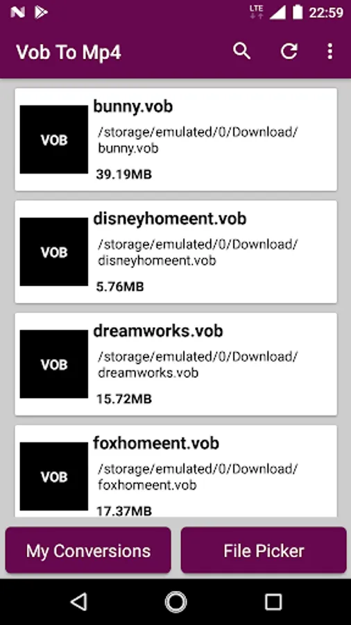 Easy to use tool for converting your .VOB videos to .MP4 file format.