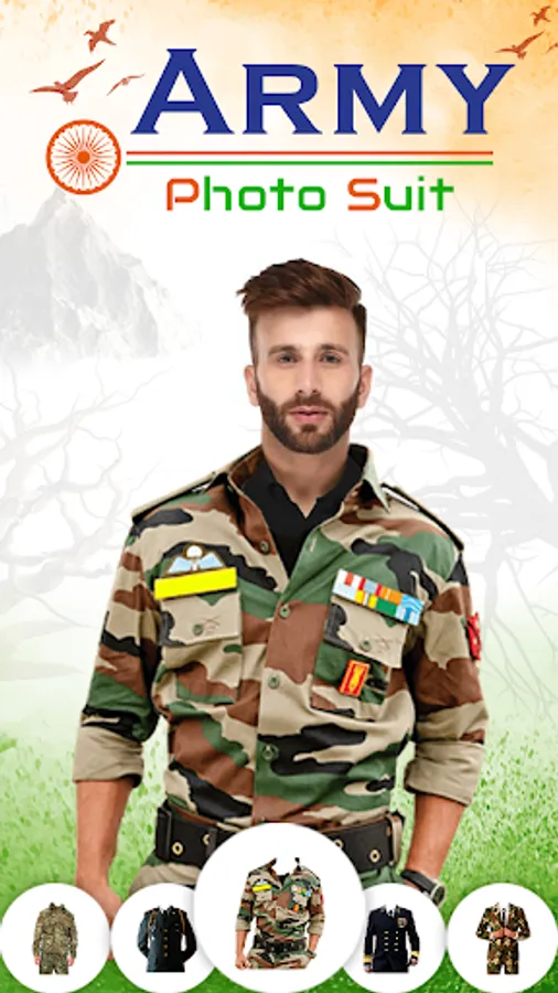 Army Suit Editor Professional App is powerful photo editing software tool for stylish TextArt on your photo and lets the face swap photo fun begin!