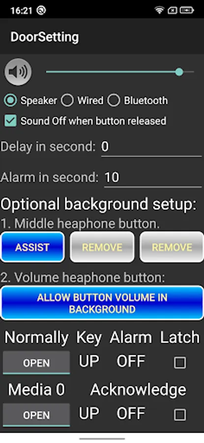 The settings panel is giving the ability to test and tune the state of the alarm sensors. During settings no phone call is dialed. A maximum of four sensors can be wired to the jack connector but availability may vary according to phone model and android version. Optional setting will help to have the functionality when the phone is locked or sleeping.