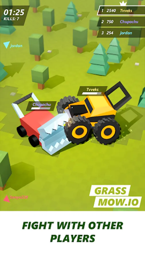 We mixed several genres and got a unique survival game where the lawnmower is the main hero: for those who like relaxing lawn cutting, for fans of pvp survival games and for fans of io battles!