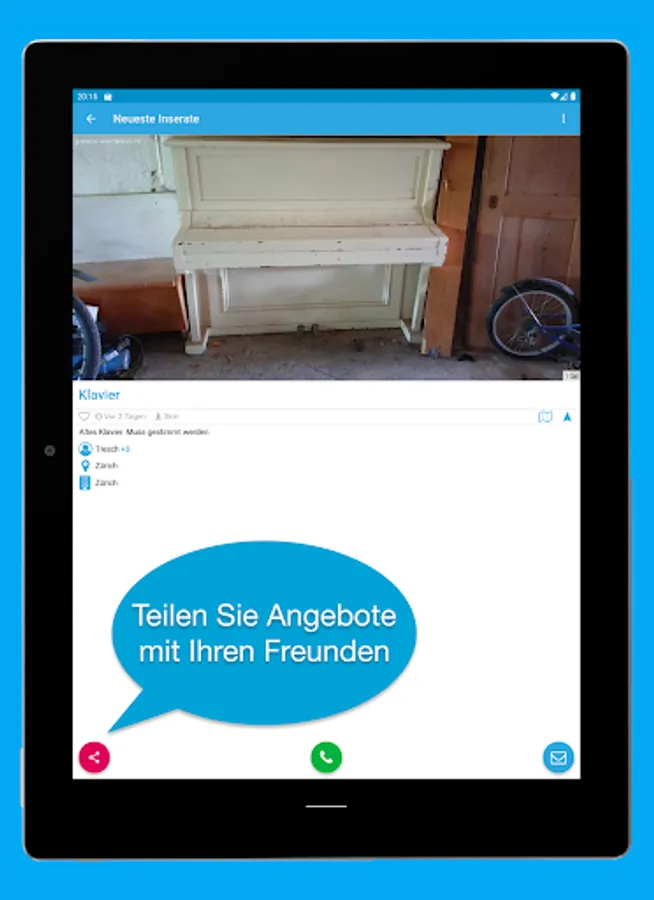 Brand new classifieds app to give away. Free ads from all over Switzerland 🇨🇭, Austria 🇦🇹 and Germany 🇩🇪.