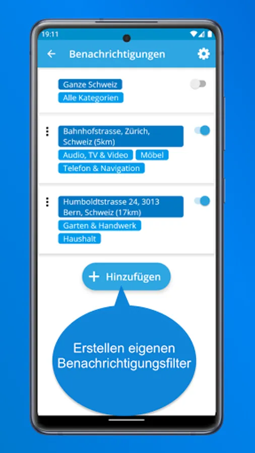 Depending on which notifications you want to receive, you can change the location, categories and keywords.