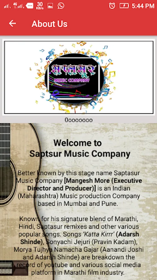 Saptsur Music Company Working in the music industry for a decade. this app contains all information related to company and work done by company.