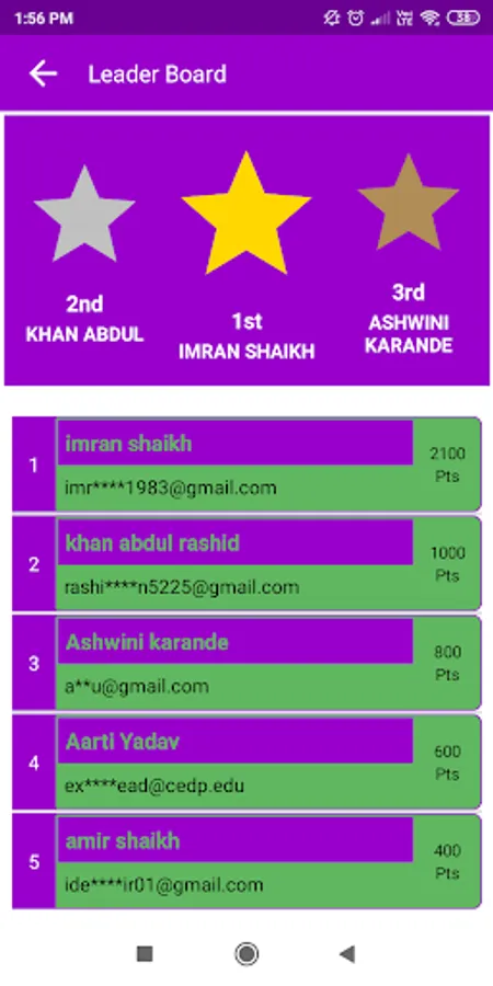 Skill Leader board: Person with highest top 3 will be updated everyday.so person with top reward points can be viewed.