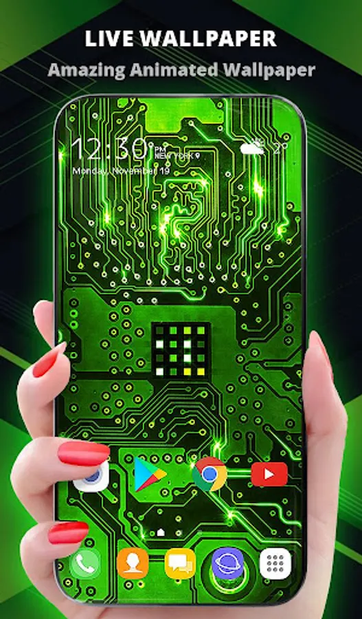 The cool wallpapers you’ll find in Green Light Cyber Circuit Wallpaper and Keyboard deliver gorgeous moving background artworks. High-quality free wallpapers that fit your home screen & lock screen. You can choose the main wallpaper you get when you hit the SET WALLPAPER option. Or you can browse other designs in the gallery for more 3D cool wallpapers and animated backgrounds. Wave premium free live wallpapers 4K are optimized for battery life, saving power when the screen is off, or using other apps: