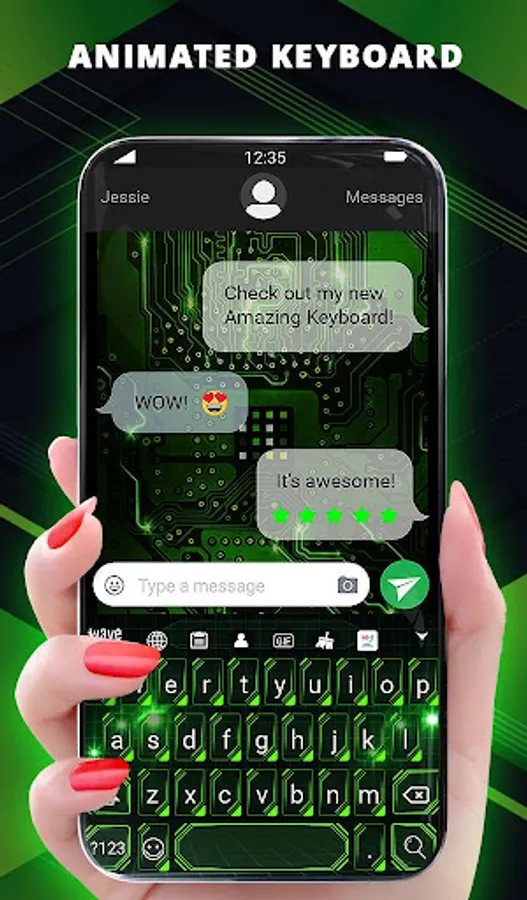 Green Light Cyber Circuit Wallpaper and Keyboard is an awesome personalization app that gives your Android phone a stylish new look. Wave cool wallpapers and keyboards apps help revamp a device in just 3 steps: