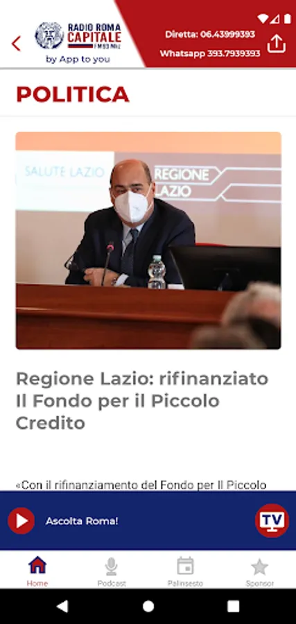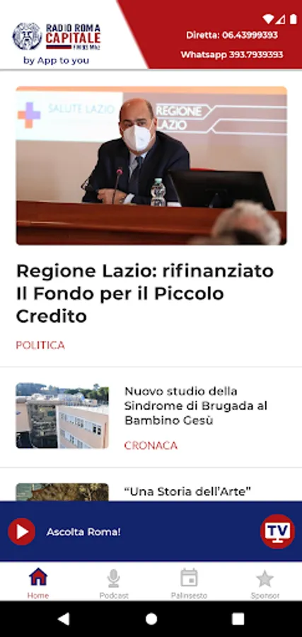 - listen to live streaming of the broadcasts of Radio Roma Capitale