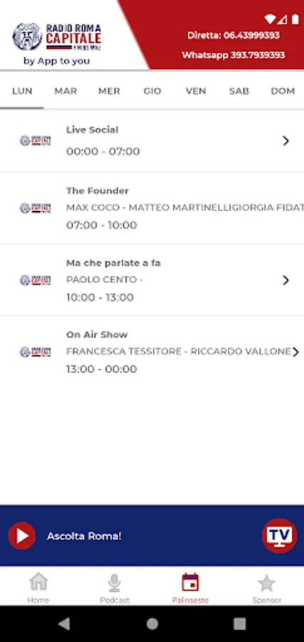 The new "Radio Roma Capitale" App, designed in collaboration with the digital App to you agency, allows you to: