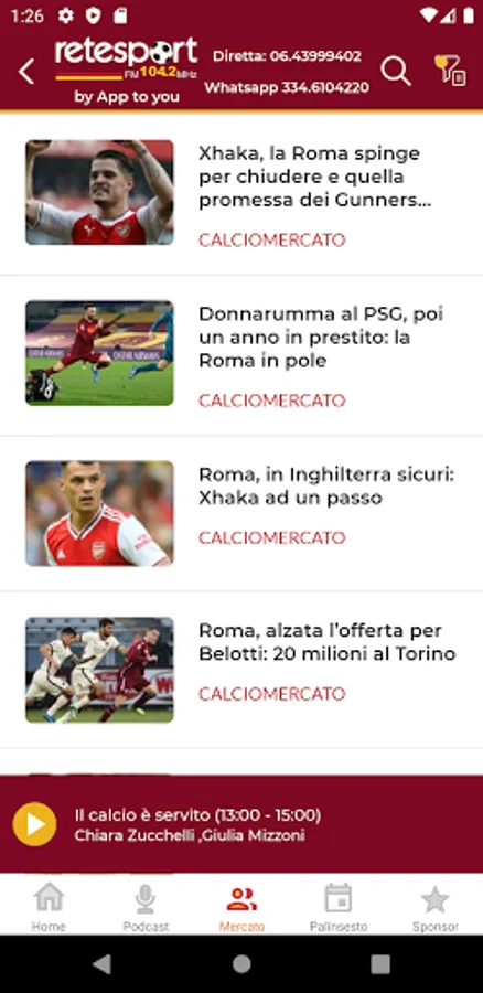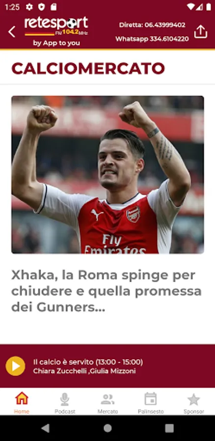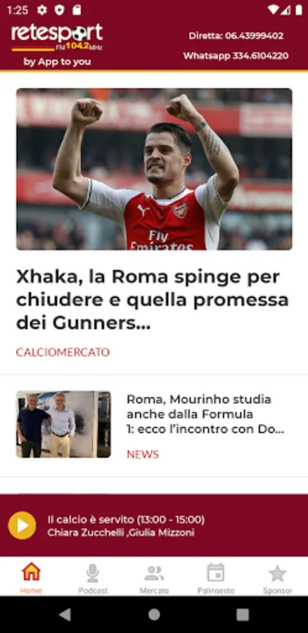 The first radio with a schedule entirely dedicated to a football team, Rete Sport was born in Rome on January 1, 2002 after two years of gestation. Strengthened by an effective slogan ("it's sport - only on Rete Sport"), a reliable signal (105,600 Mhz) and a structured programming around the events of As Roma and its fans, success is immediate and striking.