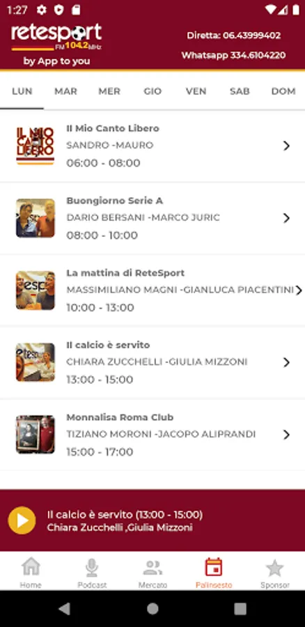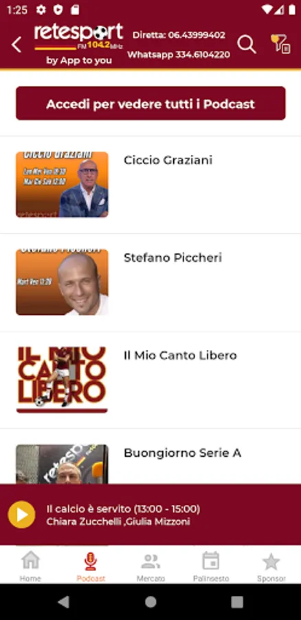 - listen to live streaming of Rete Sport broadcasts