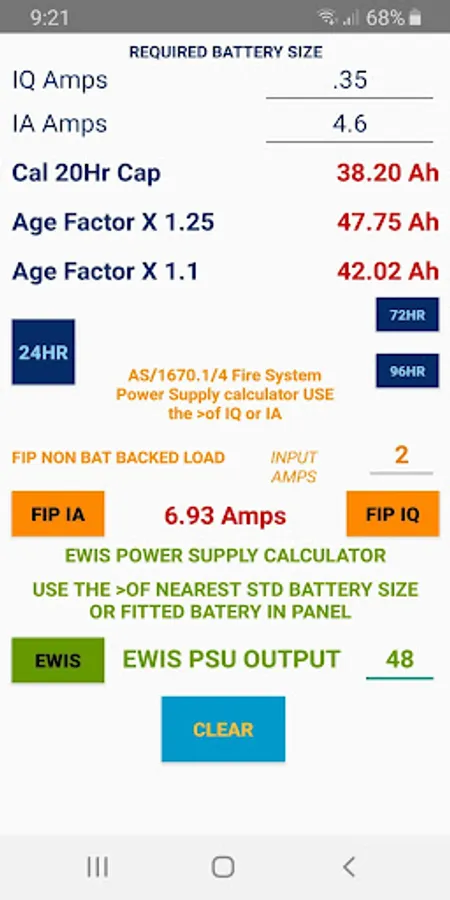 NEW in this app is now the FIP PSU calculator, calculates the power supply requirements for each 24Hr, 72Hr and 96Hr systems.