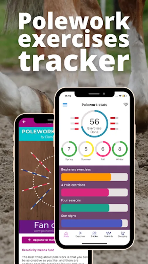 This polework app is created by #1 best-selling author of ‘Listenology’ & award-winning equine film director, Elaine Heney & is perfect to use with your equestrian tracker. Get awesome ideas for lessons, schooling sessions, & with our pole spacing guidelines you’ll never wonder about pole distances again - by just having the phone in your pocket! Includes trotting pole distances.