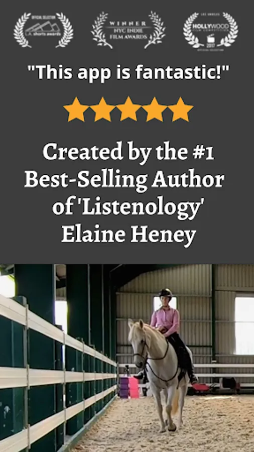 This equestrian app was designed in Ireland by the #1 best-selling author of 'Listenology', award-winning 'Listening to the Horse' documentary producer & international equestrian coach, Elaine Heney. Elaine has helped over 120,000+ horse owners in 113 countries to create inspiring relationships with their horses.
