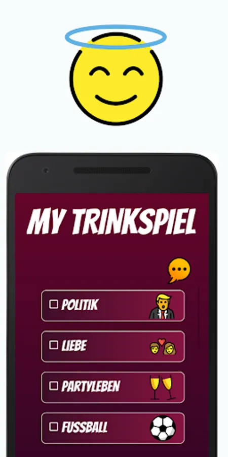 Here comes the best drinking game for your pre-drinking! Okay, admittedly: everyone says that. So why exactly this drinking game? Quite simple: Just imagine, you can use an app to tick exactly the topics that interest you and your circle of friends, so that you get a drinking game that suits you 100%. Sounds pretty nice, right? That's what MyTrinkspiel offers.