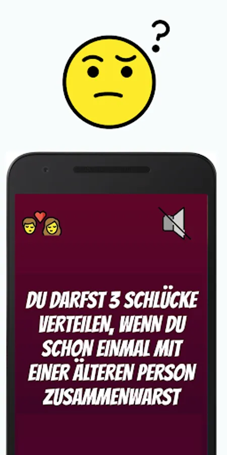 With the themes that you tick, personalized drinking games are generated that are perfectly tailored to your interests. The rest you do not tick will just fly out. There are over 800 questions available. So you do not have to worry about repeating the questions from the 3rd round. These questions are very different: sometimes you have to vote, sometimes you have to say something in turn and sometimes you have to do something completely different again. But one thing is certain: Hereby you have the best drinking time of all time!