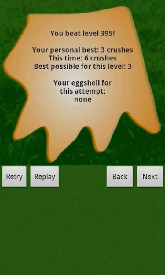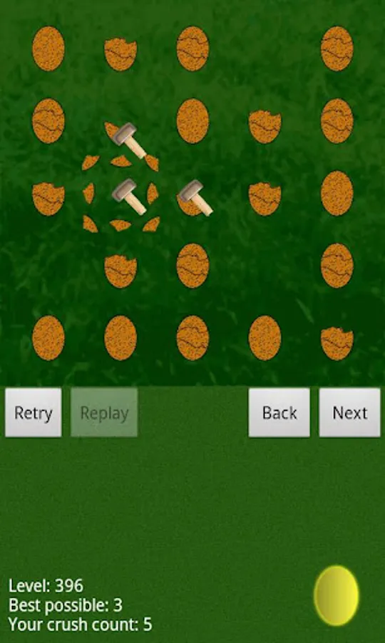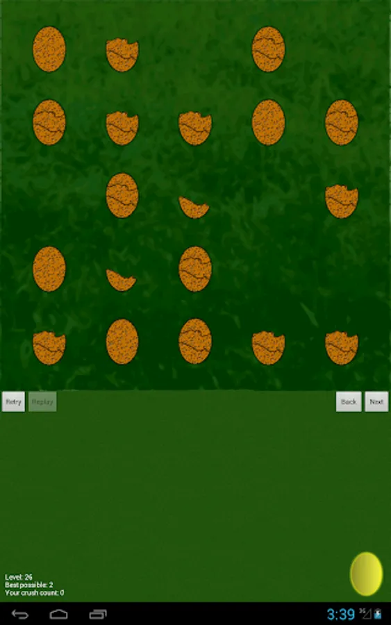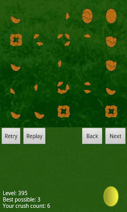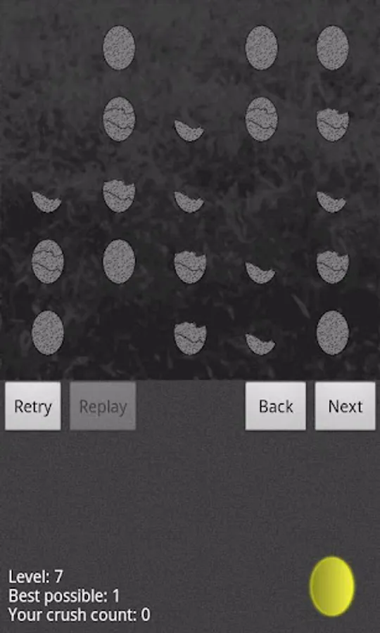 Crush the eggs through chain reaction. Earn golden eggshells to unlock the next level. Just play through the game... or prove that you can get all golden eggshells for minimum crush count! Achieve 100% completion.